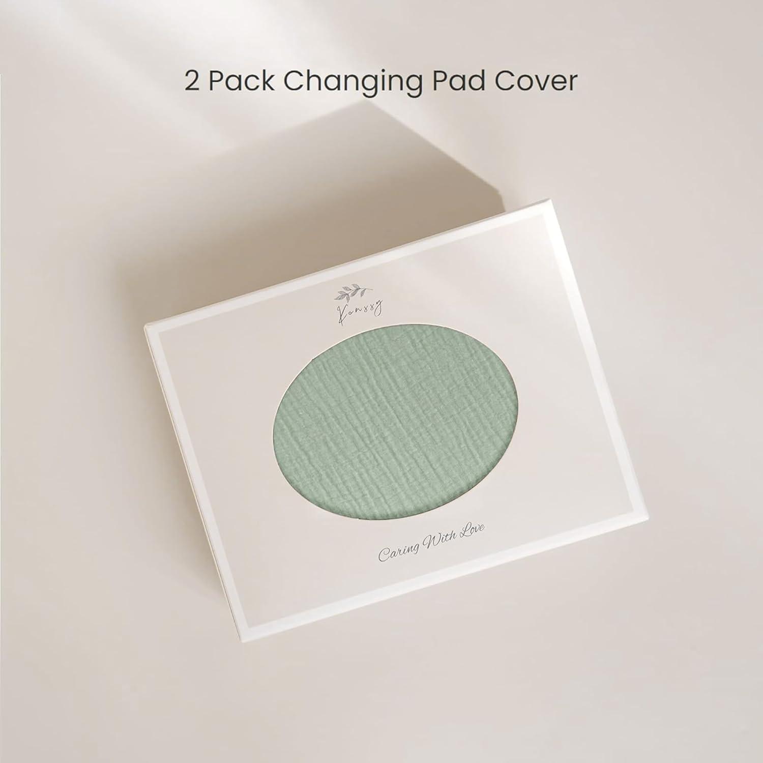 Konssy 2 Pack Muslin Changing Pad Covers for Boys, Ultra Soft & Breathable Cotton Baby Diaper Changing Table Covers, Neutral Nursery Diaper Changing Pad Sheets(Navy, Cream)(Fog Green Cream)