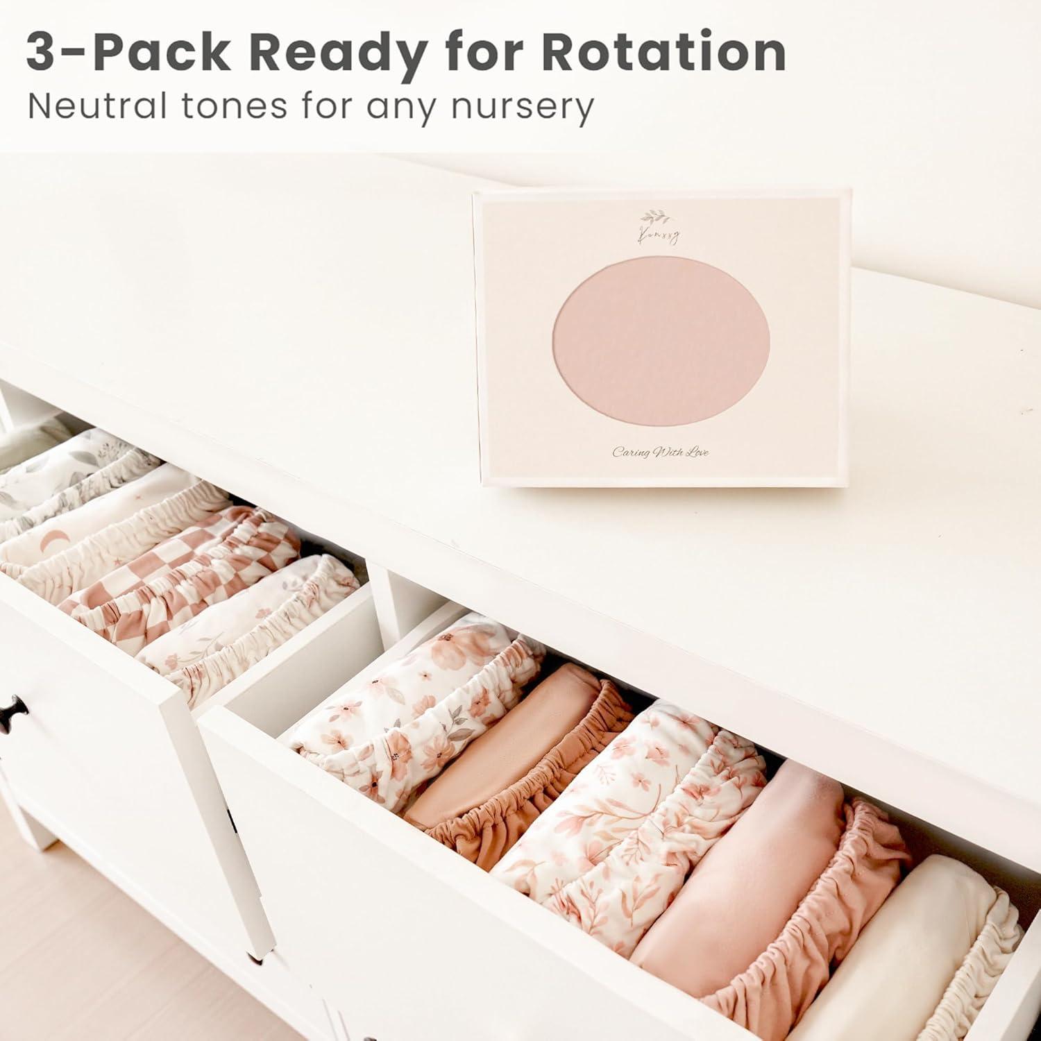 Konssy 3 Pack Stretchy Bassinet Sheets for Baby Girl Boy, Soft Breathable Baby Bassinet Mattress Sheets Fit for Hourglass Oval Cradle, Moses Basket Rectangle Mattress (Coffee Check)(Pink Spring)