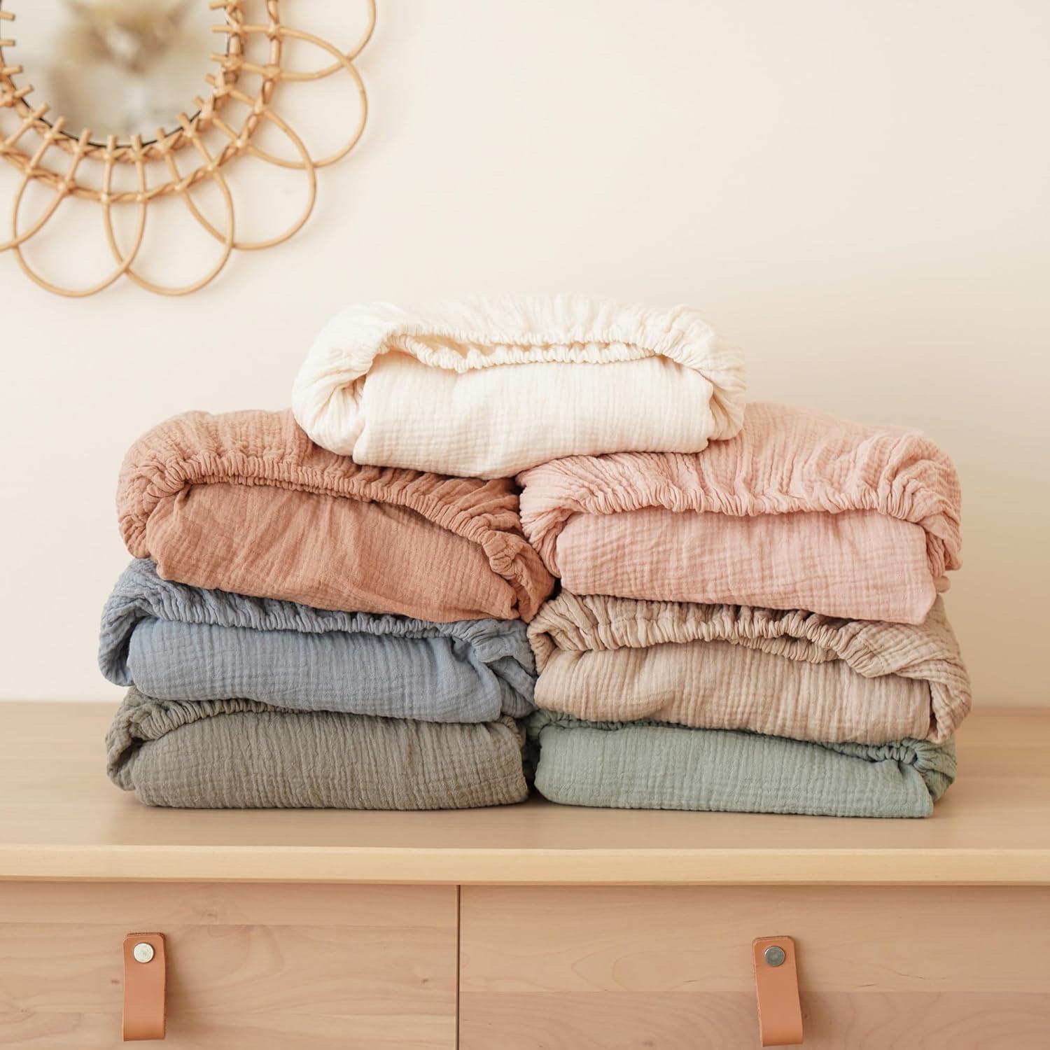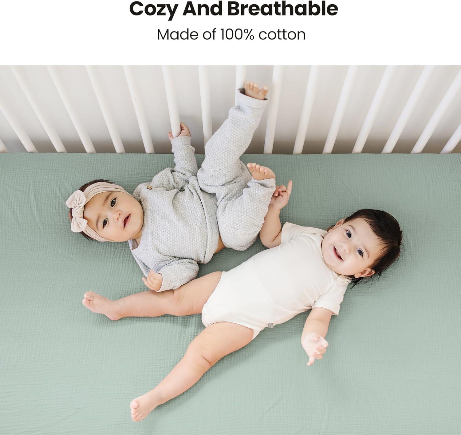 SUPER SOFT and BREATHABLE: These muslin crib sheets are made of 100% cotton (Muslin) for maximum breathable with skin-friendly soft touch and retain its color after washed for several times. Keep your baby super comfortable and soft with this crib sheet.