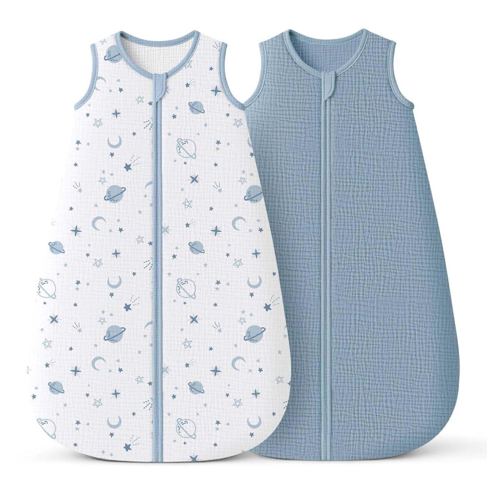 Double-Layer Muslin for Breathable Comfort: Crafted from OEKO-TEX certified muslin cotton with a soft double-layer design, this wearable blanket offers gentle warmth and breathability—perfect for naps and bedtime in warmer rooms or transitional seasons. Each set includes 2 sleep sacks—one in a solid color and one with a delicate print—blending comfort and style for everyday rotation in your nursery.